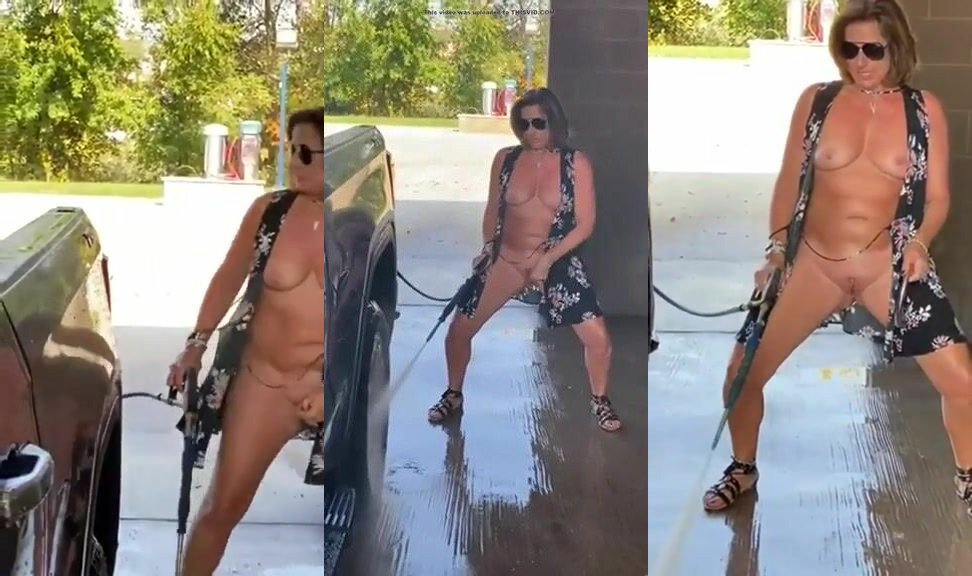 Mature squirts while washing the car