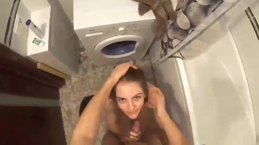 Russian girl fucks and swallows in the bathroom