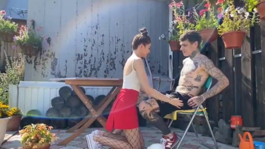 Tatted bad boy fucks prep school teen in backyard